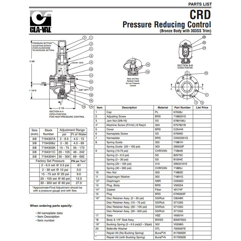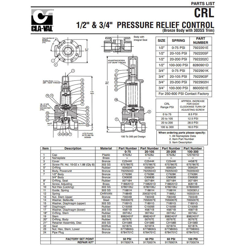 CLAVAL | SPRING, GREEN, 30-300PSI, CRD, CRL | 71885J