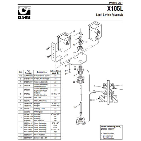 ClaVal adapter is part of the assembly for the Cla Val X105L Limit Switch assembly.