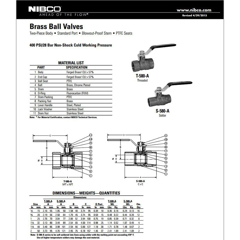 Valve pressure rating 400 psi/28 bar non-shock cold working pressure