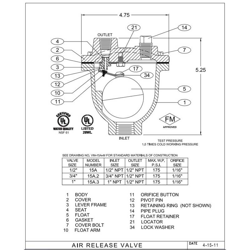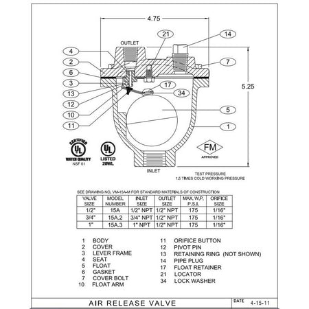 VALMATIC | AIR RELEASE VALVE | 175 PSI | 1/2" | 15A