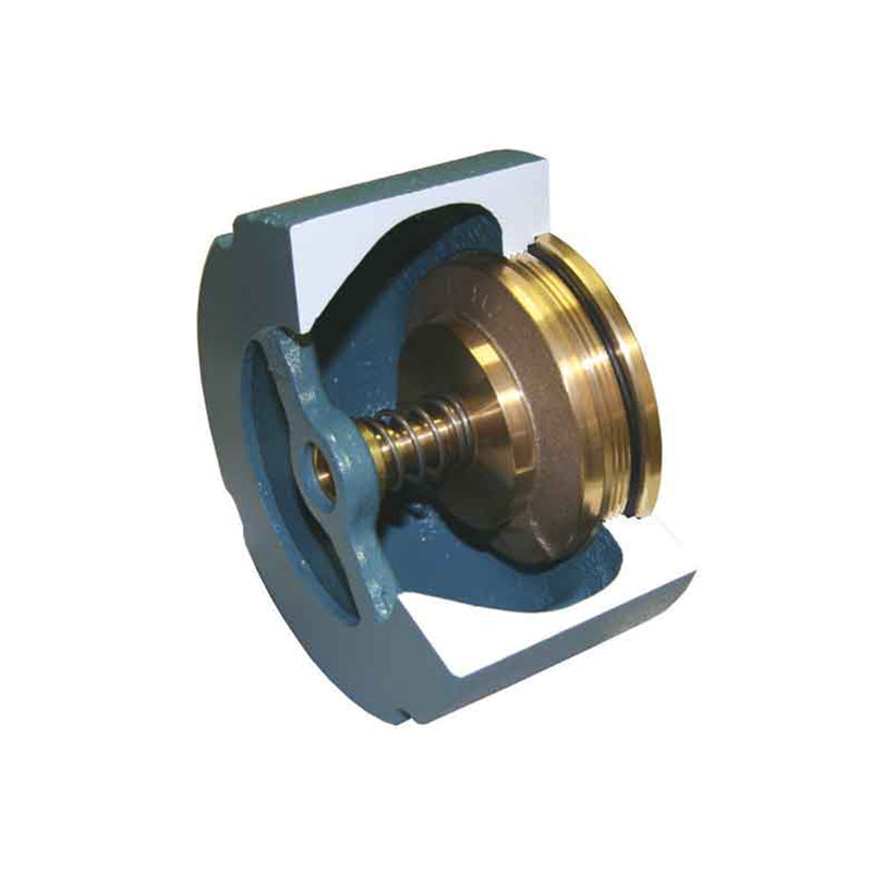The silent check valve is designed to prevent reverse flow automatically. On pump start-up, the flow of water enters the valve from the seat end and forces the disc open, allowing the passage of fluid through the valve.
