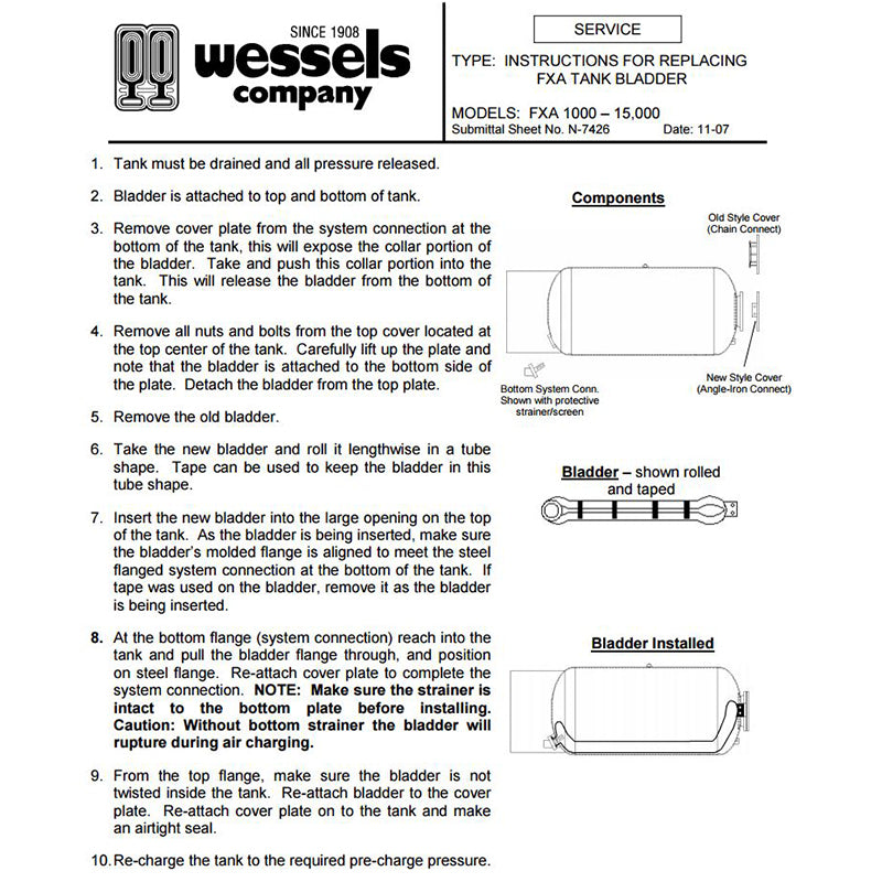 WESSELS | REPLACEMENT BLADDER, 21 GALLON, FX80V | 0300080
